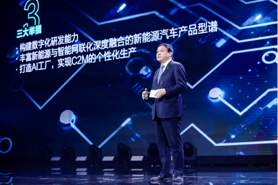 其中,“一个目标”是坚持“一个卫蓝梦,两个世界级”的企业愿景;“两大路径”是打造行业命运共同体和全面参与国际竞争。三大举措,一是构建数字化研发能力,二是丰富电动化与智能网联化深度融合的新能源汽车产品型谱,三是打造AI工厂,实现C2M的个性化生产。并从动力电池、智能互联、客户服务、能源生态等方面入手,构建四大体系:一是以锂离子电池、固态电池、燃料电池 “三位一体”的能源驱动系统构建多元化能源体系,二是基于5G/6G构建采集、通信、数据、分析一体化的车-路-云大数据管理中心,三是线上线下、体验交付一体化的无缝隙全新营销网络体系,四是建成车与车、车与能源网互通互联的智慧能源生态体系。