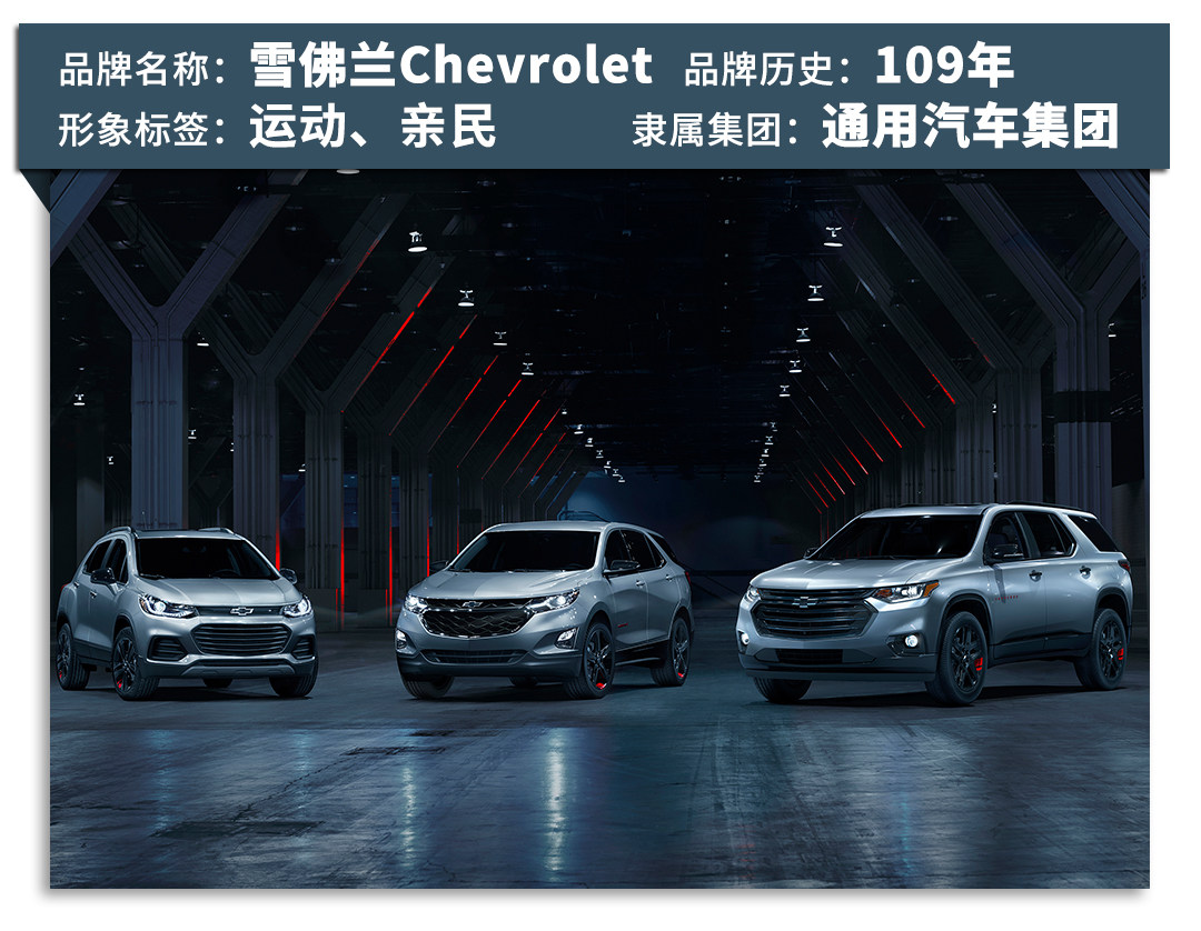 雪佛兰Chevrolet——诞生于1911年,到现在为止已经拥有109年历史,是具有年轻活力、运动基因的形象,是通用汽车集团旗下最大的品牌,被亲切得称其为“Chevy”与棒球、热狗、苹果派被并称为北美人民最喜爱的四大元素。