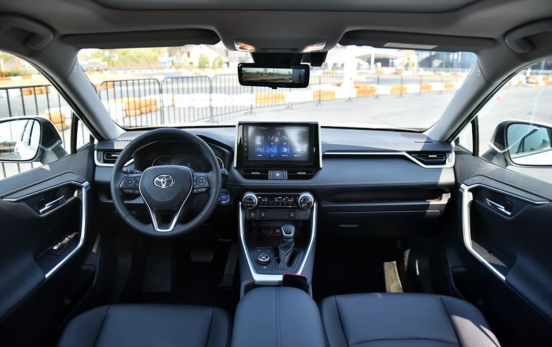 荣放RAV4的内饰简洁而硬派,与外观的风格一脉相承。内饰整体采用了T字型的设计,采用悬浮式的中控屏,车内的实体按键并不多。副驾驶采用了梯级设计,副驾驶下方还有一个小小的储物空间。