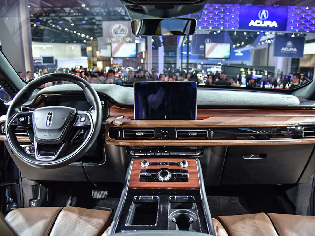 来到车内,典型的美式豪华映入眼帘,黑色中控台配以大面积皮革包裹,再辅以木纹饰板,在视觉上便告诉一众年轻消费者“我们不合适”,不过相较于目前市面主流车型追求的科技感,在飞行家上并未得到太多的体现,内饰整体偏向老派豪华的风格。
