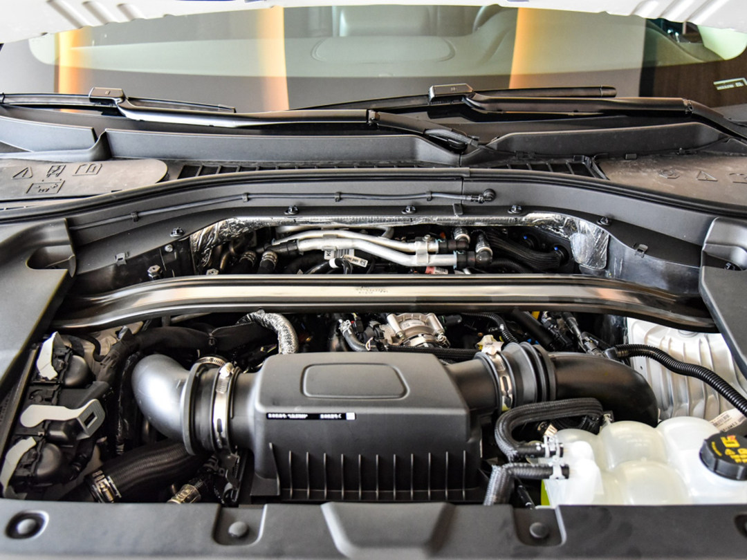 车尾的设计一改车头动感的风格,转而采用更多平直的线条将两米的车宽展现得淋漓尽致,同时大面积的白色倒车灯区域与下方镀铬饰条形成贯穿车尾的视觉效果,搭配双边共四出的排气让车尾流露出厚重、大气的感觉。