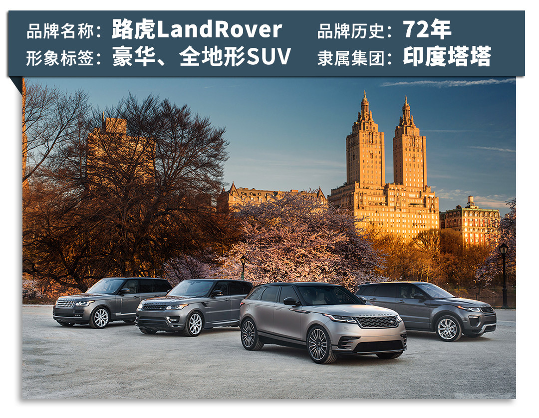 路虎LandRover——英国全地形SUV豪华品牌,创立于1948年,至今已经有超过70年历史,由于致力于打造高性能、豪华、高通过性SUV,所以路虎在特别钟爱SUV的中国市场也是比较受欢迎,路虎的SUV也被男人视为成功的标志。