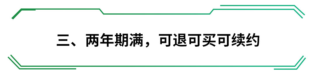 3、两年期满,用户可选择继续续约(提供3种套餐费用)、买断电池(提供3种电池买断价格)、出售裸车(根据购车周期,按3种报价回收)。