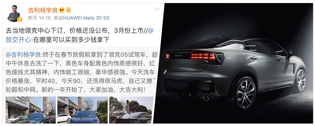 此前曝光的领克05有更新的进展,从吉利汽车集团副总裁杨学良的个人微博得到消息,称领克05将于3月份上市。领克05是品牌的全新紧凑型SUV,不同于02、01车型,它的定位属于更细分的溜背SUV阵容,基于吉利CMA架构打造而来。外观依然是领克家族式设计语言,不过前大灯组结构有所升级,同时采用了溜背式车尾造型,在D柱上更是加入了个性化的“百叶窗”细节,而尾灯使用了上下分层的造型。新车将搭载180马力和190马力的1.5T和2.0T发动机,匹配爱信8AT变速箱。