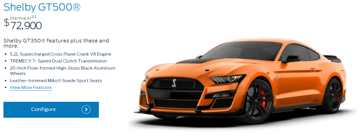 然而Shelby只为Mustang打造了第一代Shelby GT车型就中断了跟福特的合作,直到第五代车型Shelby以超跑福特GT首席顾问的身份回归福特,而且Shelby又重新推出了GT500车型,Shelby在2012年逝世之后现在的Mustang依然有Shelby GT系列,分为GT 350、GT 350R、GT 500型号。