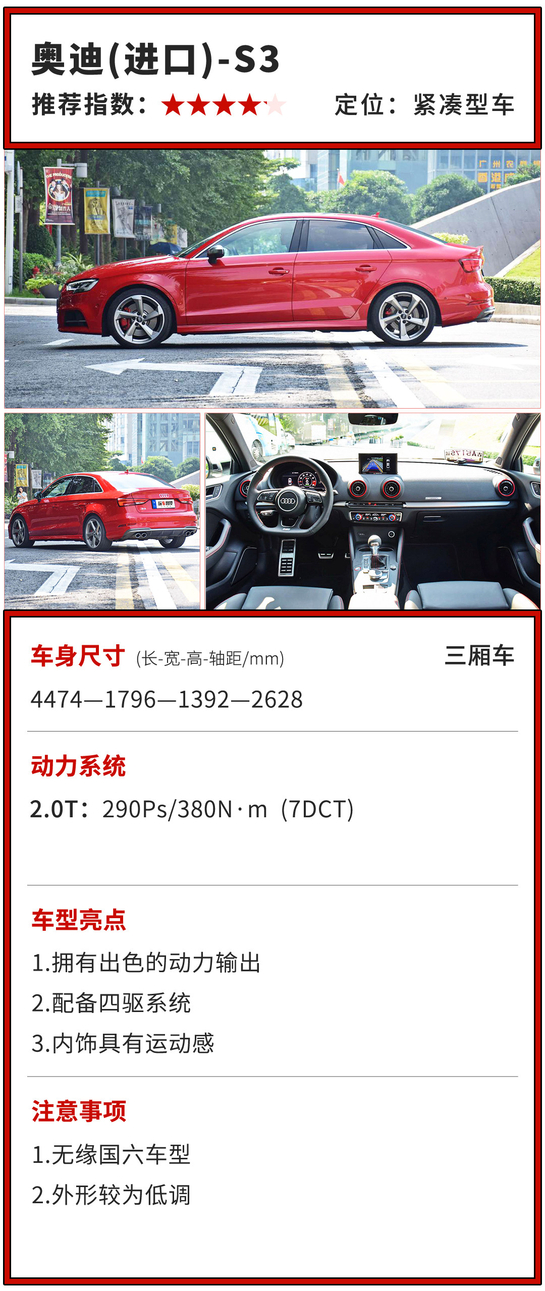 有趣的是,目前S3在新车价格上有着5万块的优惠,而这就出现了在二手车市场上的价格竟然比新车还要贵的情况,这一点也还真是想不通,或许这在不久之后又会成为一款堪比大众R系列的汽车界“理财产品”吧。