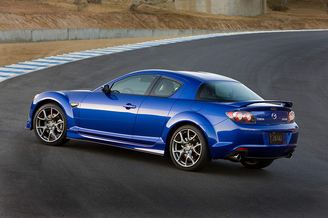 相比于其他车型,RX-8在排量上可以说是非常“小”了,仅仅只有1.3L。但是,RX-8与其它车型不同,该车型并没有采用传统的内燃发动机,而是采用了马自达著名的转子发动机,这是一个三角形的发动机,这个发动机转一圈等于内燃机工作了两次,而正是这样的原因令到这款1.3L的发动机拥有231匹的动力,8200转才是才进入红区。当然了,转子发动机还有一个特性,那就是费用,尽管只有1.3L的排量,但是油耗基本能达到18L/100km。