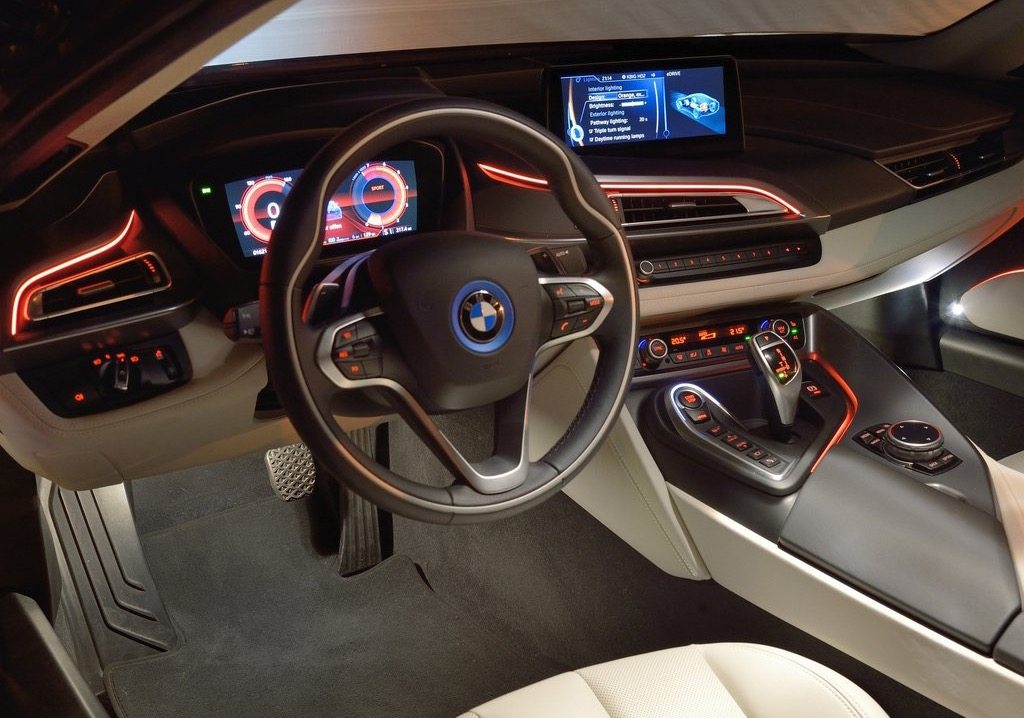 内饰上,反而缺少了外观的科幻感,一切都时踏踏实实的。中控台的层次感很好,这也是别与宝马其他车型的细节,而晚上氛围灯点亮的时候,环境极其浪漫。