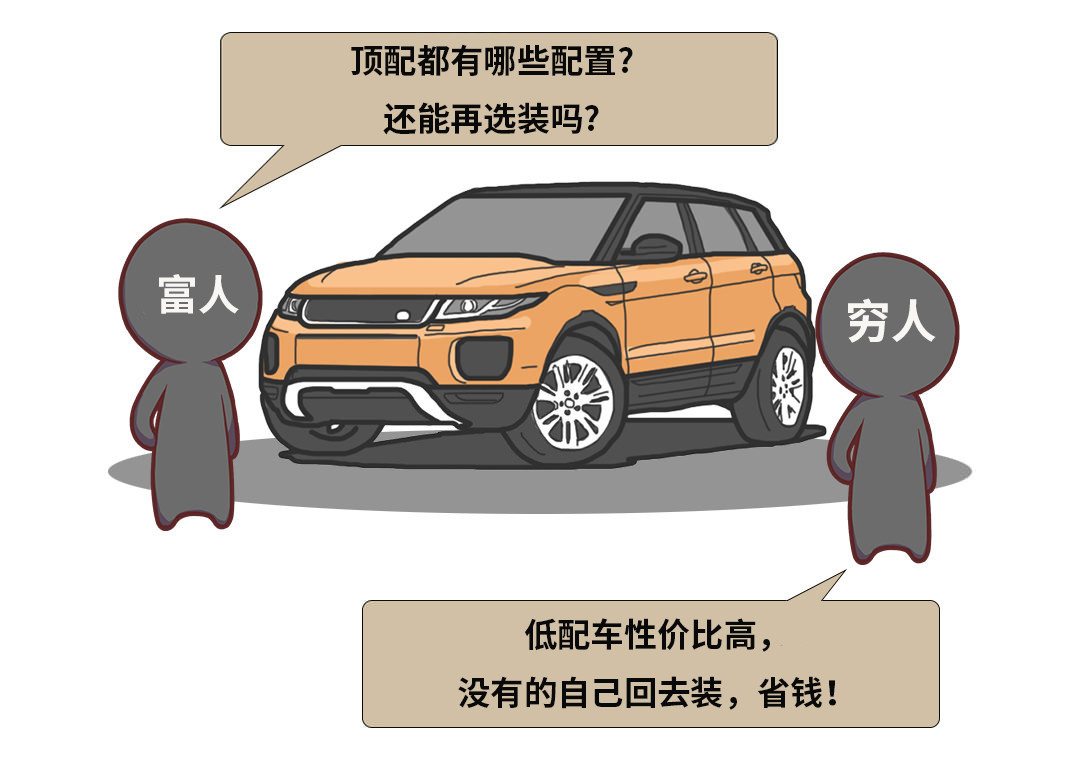 穷人更多的是追求性价比,毕竟省下来钱就是赚到的钱,没有的配置实在想要,像倒车影像、行车记录仪、车载音响这些都可以后期加装,去汽配城分分钟搞定了,也花不了几个钱,买高配的真的是人傻钱多。