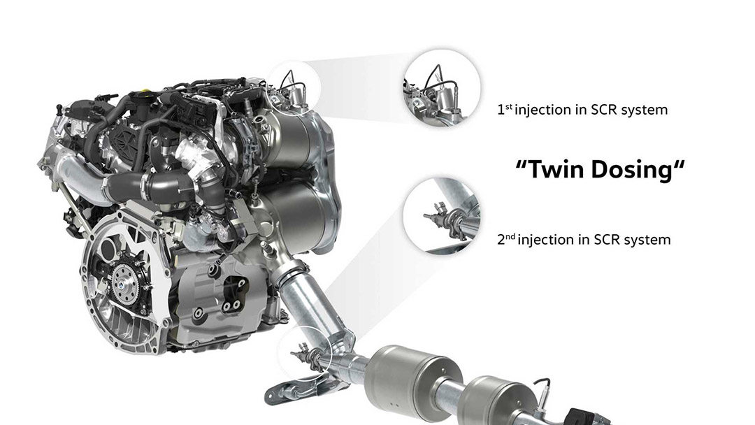 日前,大众官方发布了新款EA288 Eco柴油发动机(TDI)。据悉,这款全新的EA288 Evo发动机采用了Twin Dosing技术,发动机具有两套催化转化器(SRC),一个位于发动机顶端,一个位于发动机底部,每个催化转化器配备有单独的氨喷射系统,通过两次喷射尿素产生更多的氨,从而与更多的氮氧化物发生反应并转化为无害物质。大众表示,全新的EA288 Evo发动机不仅提供了高效的动力水平,并且远低于欧6d排放标准,更加清洁更加环保。