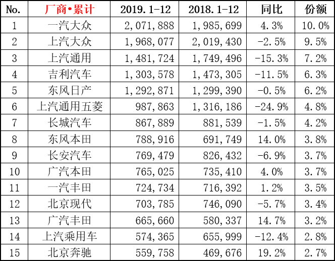 2019是乘用车销量下滑的第二年,全年累计销量2144万辆,同比下降9.6%;纵观各大品牌几乎全线下跌,在这样的环境下,只有真正的好车、产品力足够强、消费者最需要的车型才能做到逆流而上。