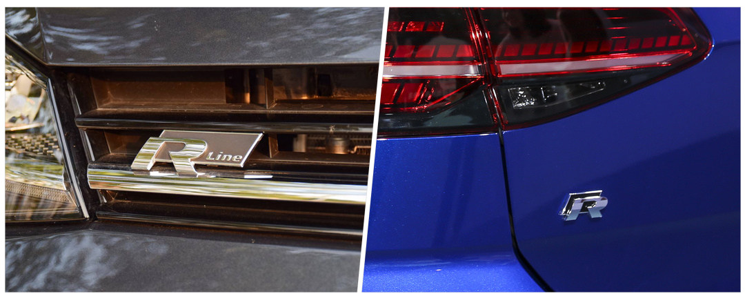 这两辆看似一模一样的高尔夫,其实左边的是普通车型加装了R-Line套件的版本,而右边的是正统的小钢炮——高尔夫R。