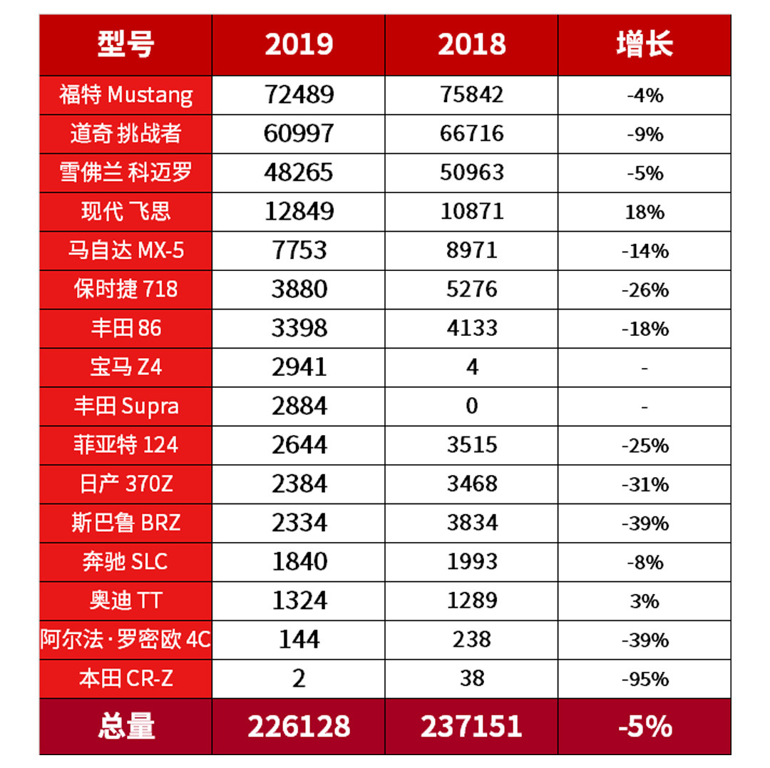 这两年上市了不少新款跑车,譬如出自相同平台的宝马Z4和丰田Supra,都有接近3千的销量,这两款车的复活面临的最大对手是保时捷718,目前出于爬坡阶段市场表现跟718销量相比也差不多可以说是初见成效,而Supra最初就是这对北美的产品,相信未来将会有更大的提升。