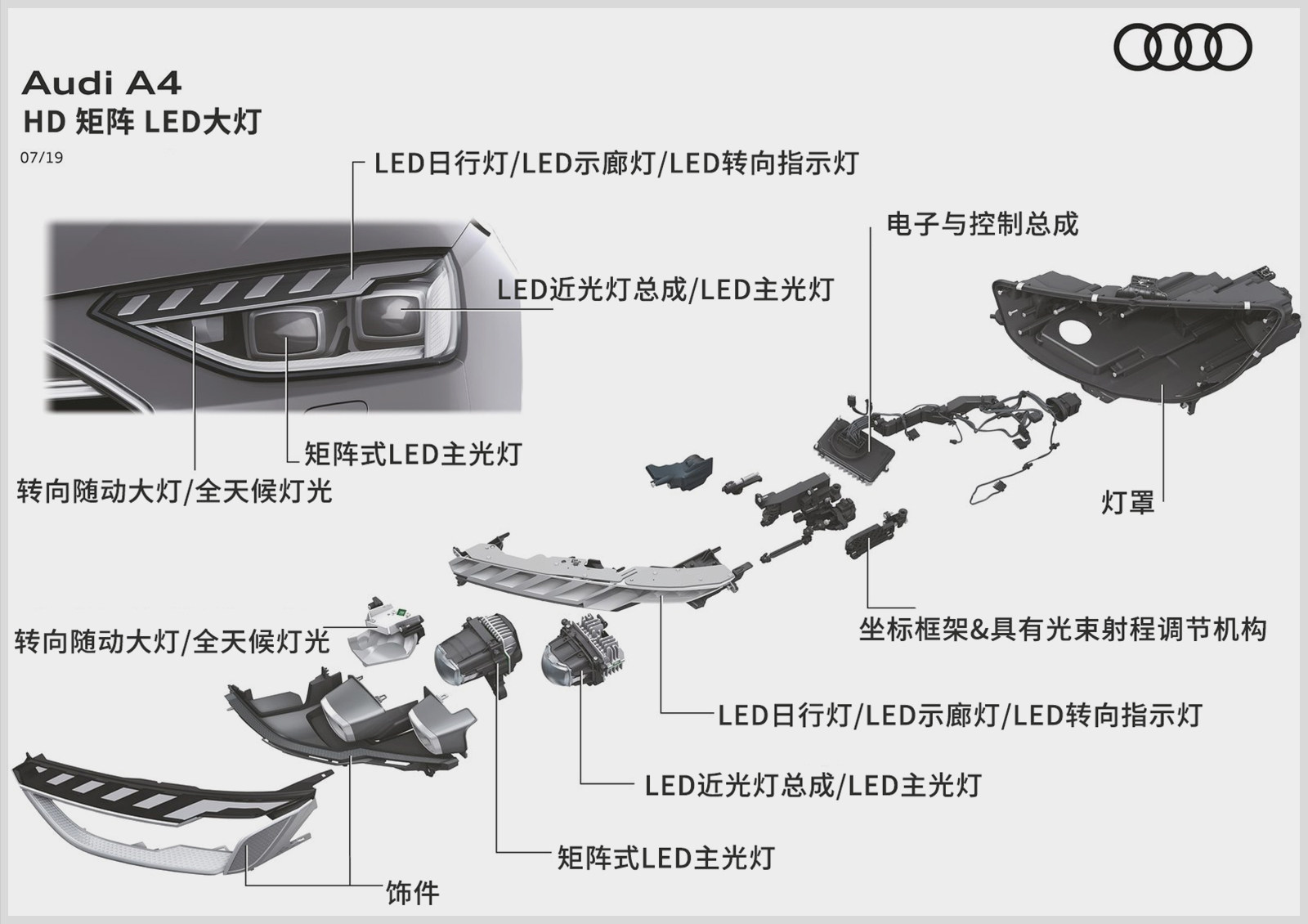 中期改款的A4,毫无疑问主题还是科技二字,简约但不简单,简化是为了更好用,而且A4L确实有很多地方是领先的,譬如灯光技术和科技配置等,相信也正因如此,A4才能跟C级、3系成就三足鼎立。