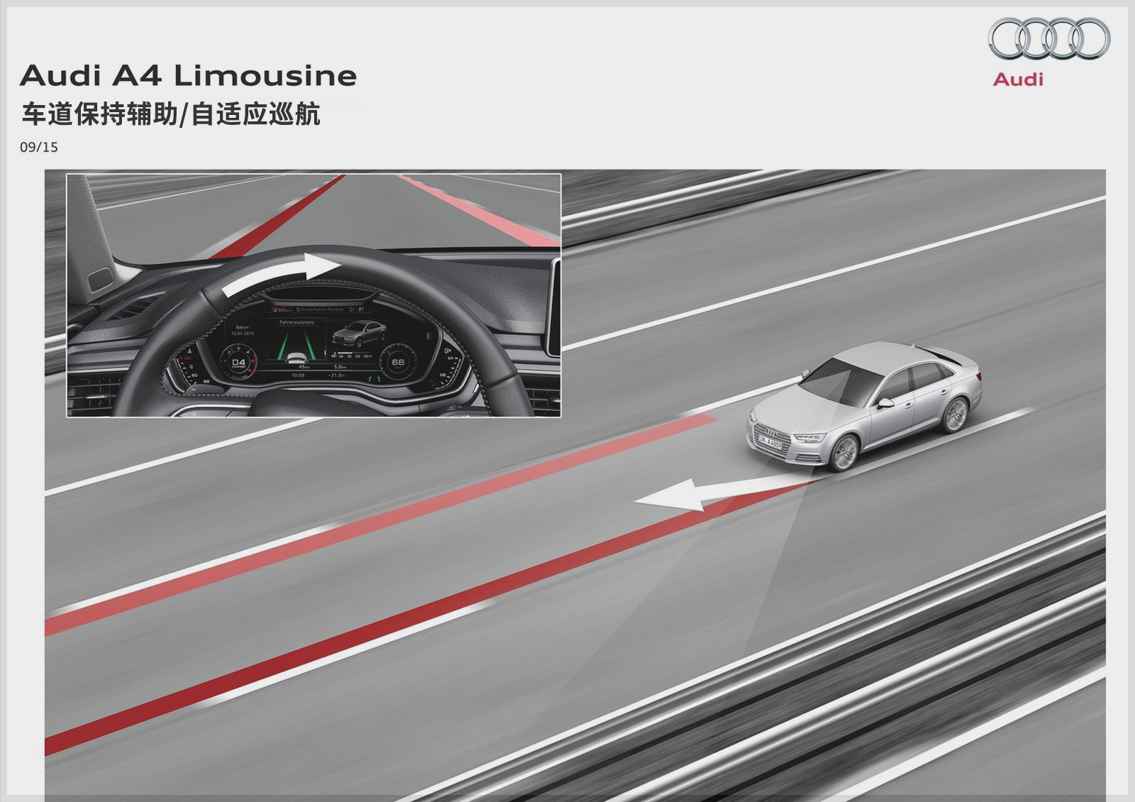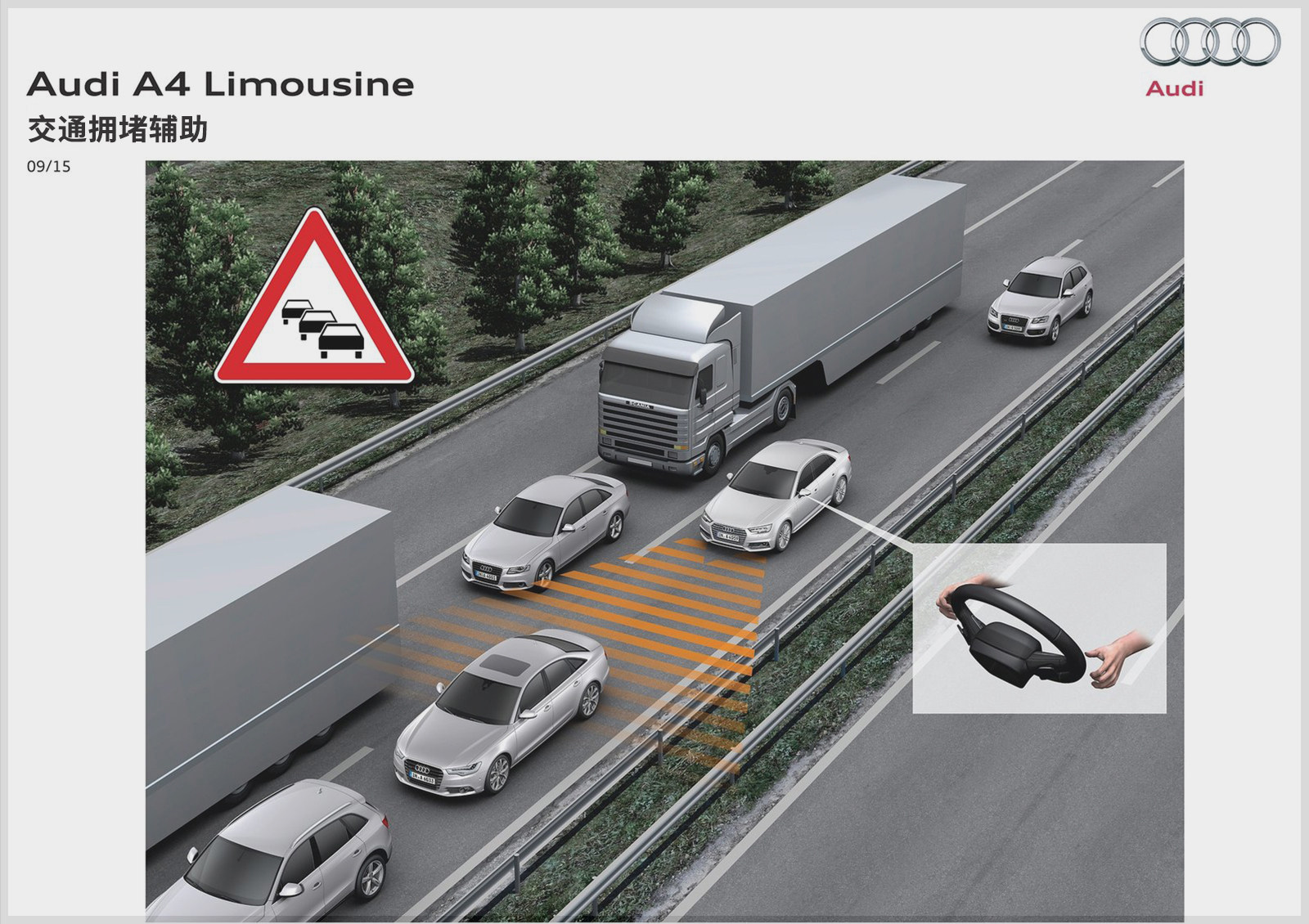 通过全方位雷达和摄像头,A4可以实现:拥堵路况辅助功能、倒车/泊车后方预警、自适应巡航、拐弯辅助、行人防碰撞功能,这些辅助驾驶技术都比较常见了。当然了,中期改款跟现款比起,其实大体的技术硬件没太大改变,还是跟现款差不多,而在同级别当中也不算是特有的装备。