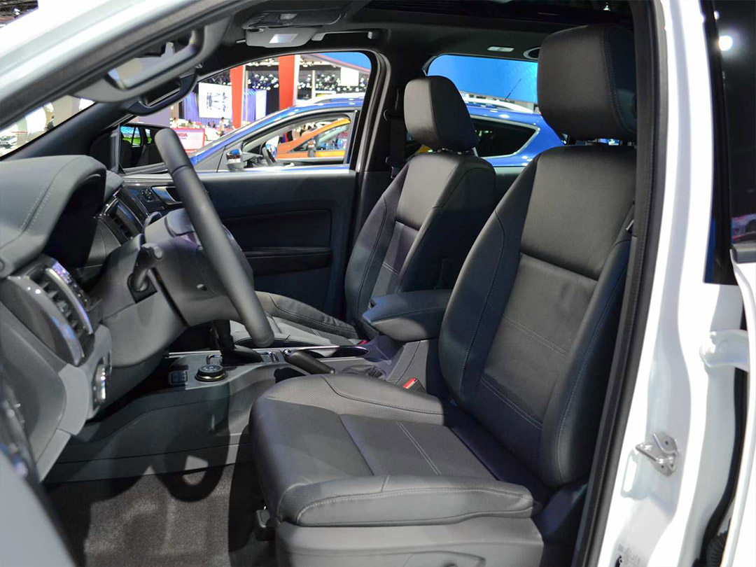 撼路者基于福特Ranger打造,可以把它理解为Ranger皮卡的SUV款,两者在车架和部分零部件是通用的。从车身来看,这是一款硬派SUV,非承载式车身,4892mm的车长,1837mm的车高,外加2.3吨的车重,十足的“美式”肌肉男。