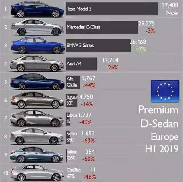 2019年上半年欧洲豪华品牌中型车销量榜