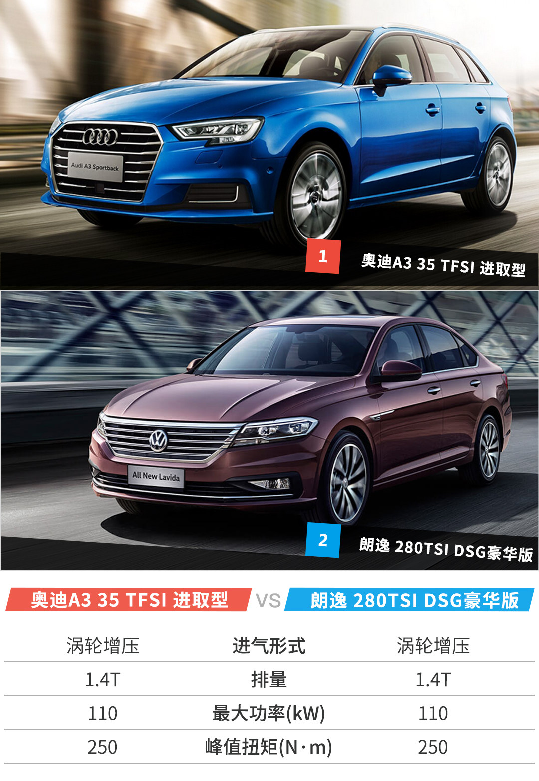 况且在硬核配置上,A3的发动机与朗逸几乎在排量、功率、峰值扭矩上的数值几乎如出一辙,连变速箱也是同样采用7速双离合的设计。可见伴随A3部分车型的优惠幅度,手持相同预算的观望者马上就会被奥迪品牌的光环吸引过去。