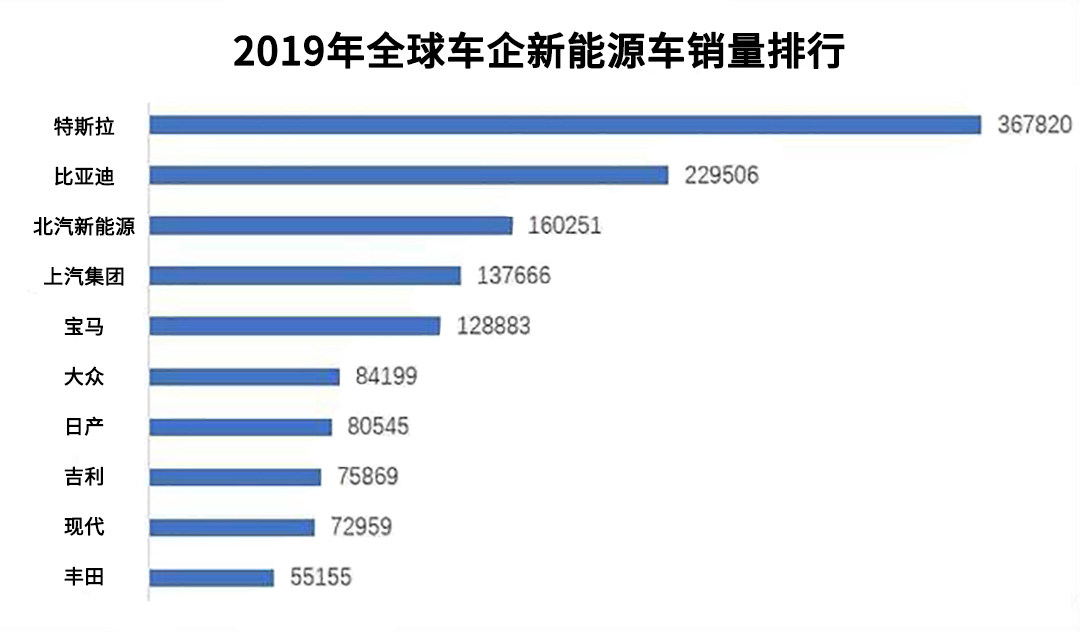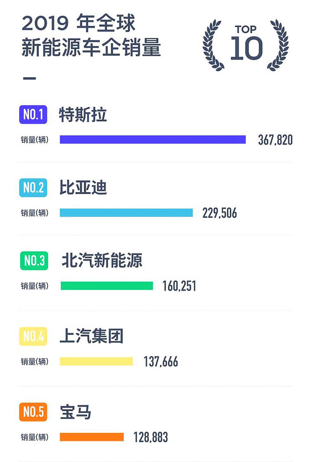 2019年全球新能源车企销量排行榜新鲜出炉,前五名实至名归!你品,你细品。
