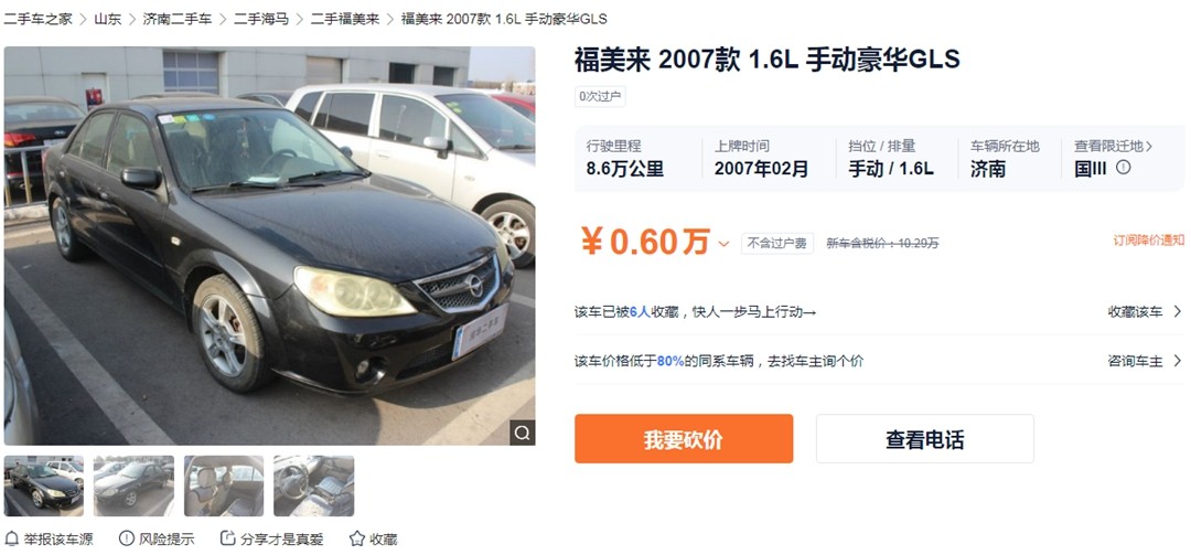 而如今,福美来早已由海马自主研发更新,但却很难企及当年的地位。而当年被誉为小“马3”的2007款福美来,如今最低只需花6000元就能买到,并且当时使用的还是海马323的ZM II型发动机,可以说比二手马3拥有更高的性价比。
