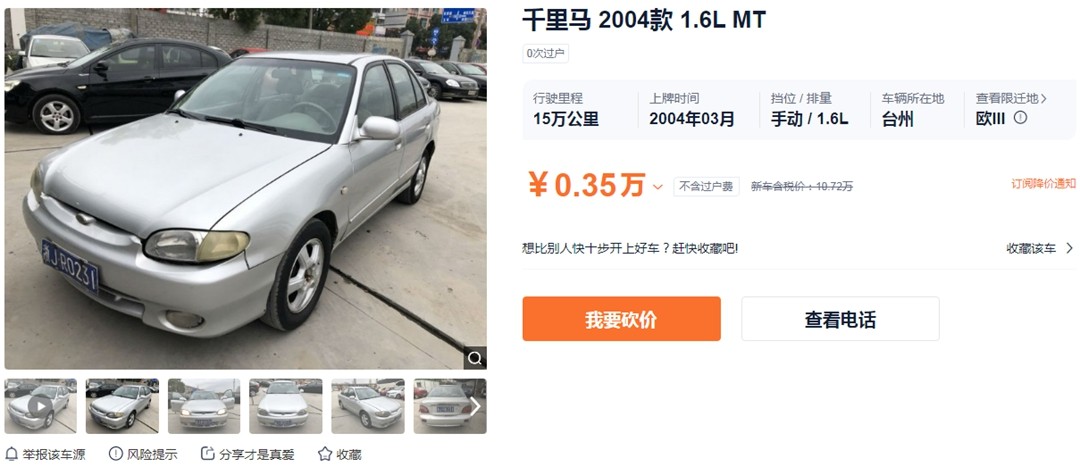 不过和很多经典车型不同,千里马在停产后并未“复活”,而如今停产10多年后,市面上存在的二手千里马车龄都较大。如今二手车之家中最便宜的千里马车型,报价仅为3500元,这也是这几款车型中最低的。