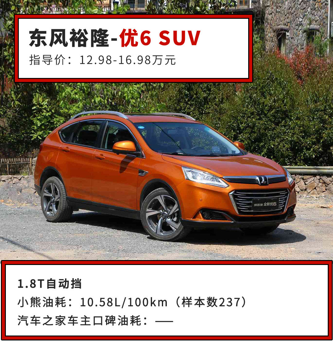 优6 SUV搭载1.5T和1.8T两种动力,均匹配6AT变速箱,车主普遍反馈1.8T发动机油耗偏高,在小熊油耗上,车主的平均油耗为10.58L/100km,这样的油耗在1.8T的SUV里面,算中规中矩。但如果在紧凑型SUV里面,10.58L/100km就算高油耗了。