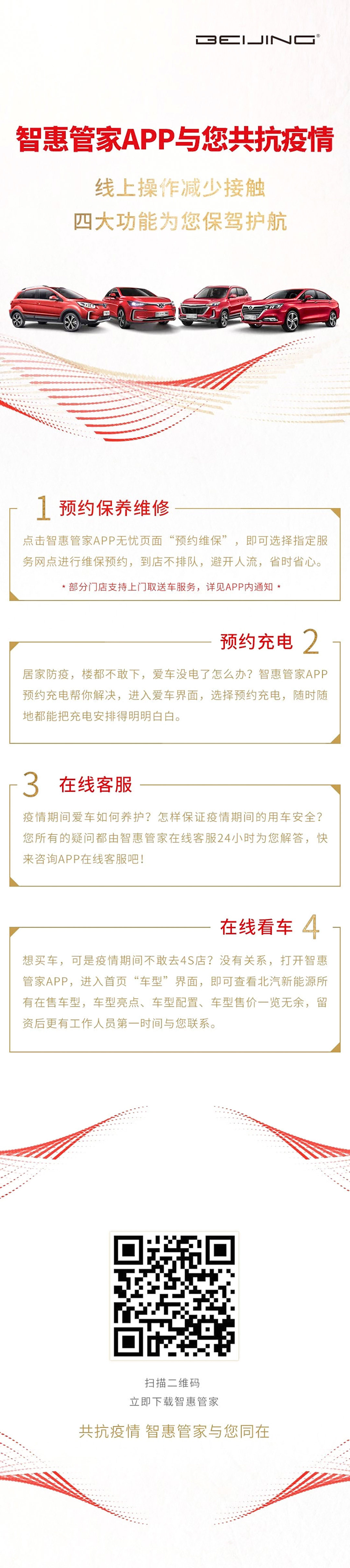 值得注意的是,对于赠送参与疫情的医务工作者全年基础保养、及对于车主提供的上门取车服务,充分体现了北汽新能源企业对奋战在抗疫一线的战士和车主的关爱。