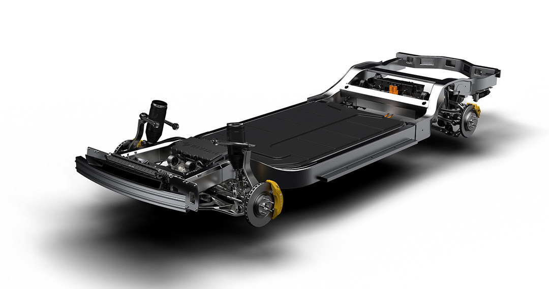 在技术性能部分,Rivian表示他们的两款新车采用了相同的“滑板式”平台,电池组与扁平的底盘融为一体,这是R1T和R1S做出全平地台的关键;同时,由于所有机械部件的安装高度都比较低,因此R1T和R1S也拥有非常低的车身重心,这有助于改善公路驾驶性能。