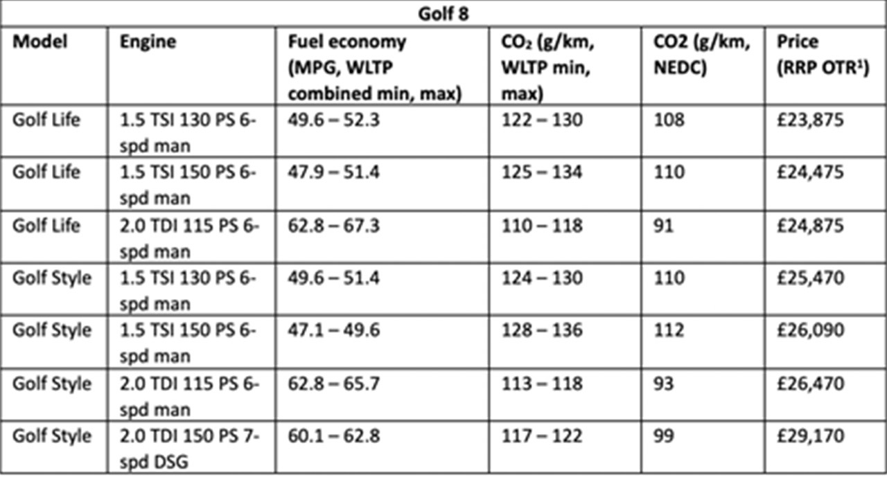 大众第八代高尔夫将会在海外率先上市,近日外媒就公布了新车在英国的售价表,起售价为23875英镑(约人民币21.7万元),全新高尔夫在英国市场推出了Life和Style两个版本,涵盖了1.5T和2.0T两种动力。而最低配的Life trim车型已经配备了16寸合金轮圈、倒车雷达、10.25英寸仪表盘以及10英寸中控屏等,可见低配车型的配置也非常丰富。同时英国市场的车型配置会比其他部分市场的要领先,像大尺寸的仪表盘和中控屏属于标配,其他市场则使用8.25英寸屏幕等。