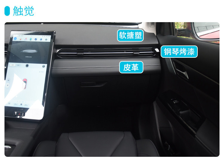 有意思的是,虽然小鹏G3和威马EX5的入门价格不算太高,但在做工和用料层面上,两款车都可以说非常的厚道,小鹏G3在中控台、门板、等多处大量使用了钢琴烤漆面板、皮革或者软性材料,日常所触之处皆为软性材料包裹,质感值得点赞。