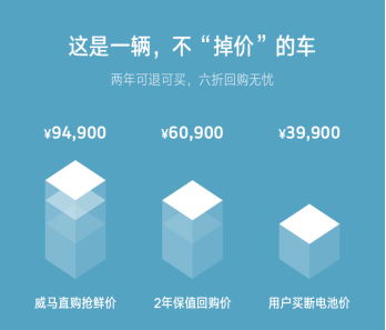 作为业内首个“硬件+服务”的新能源汽车新零售模式,“威马直购”以“半价提车、行驶月费套餐、保值回购”的创新形式,为用户在购车、使用、置换、保值等方面提供全方位的价值保障。