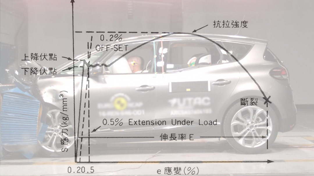 材料有两个很重要的值,屈服强度和抗拉强度。简单一点可以理解为这两个数值直接体现材料的坚硬程度。屈服强度可以理解为需要用多大的力把材料弄变形;抗拉强度可以理解为需要多大的力把材料弄断,它们的单位都为MPa。对于汽车来讲,当发生碰撞时,车身结构任何形变都有可能致命,所以屈服强度在教授看来更重要。