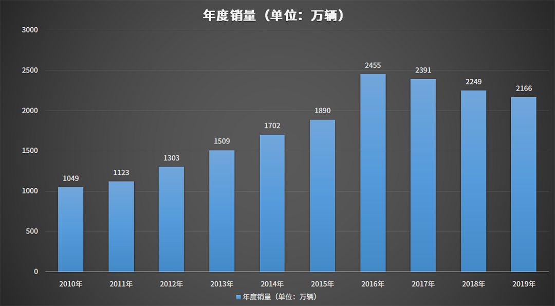 在了解结论之前,我们先来看下中国汽车市场的现状。根据交强险数据显示(可直观了解上牌量),2016年的2455万辆成绩达到了中国汽车销量巅峰,2017年则开始了“三连降之路”,销量稍有下滑到2391万辆,2018年销量为2249万辆,至于过去不久的2019年则下降到2166万。所以2020年销量至关重要,若是倒退到2015年水平,绝对影响到各大车企的信心,最直接的是产品投放会更为谨慎,我们车型选择就更少了。