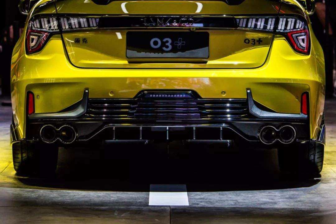领克03+:除了外观上惊艳的金配色以外,大量碳纤维套件的加入(前/后包围、侧裙以及尾翼),以及C柱上标识都是让你不与普通版车型混淆的有力“证据”,这里需要注意的是,搭配在03+上的碳纤维套件可都是如假包换的碳纤维材质,在这个价位的车型上,这并不多见。
