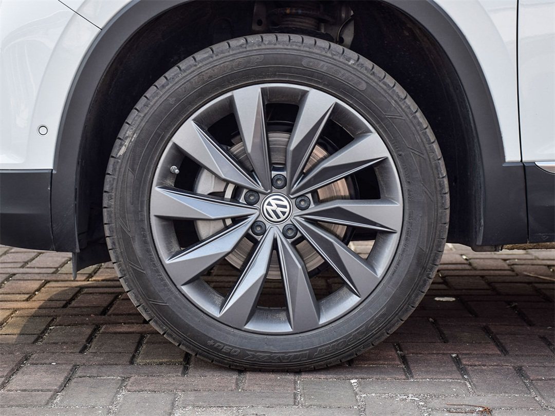 探岳主要针对的是一部分年轻的消费者,运动的外观是必不可少的。作为一款中型SUV,加高的底盘并不影响它对运动的诠释。轮毂是它点睛之笔的地方,探岳采用了深灰色的19英寸十辐式的轮毂,运动的调性一下子被激发出来。