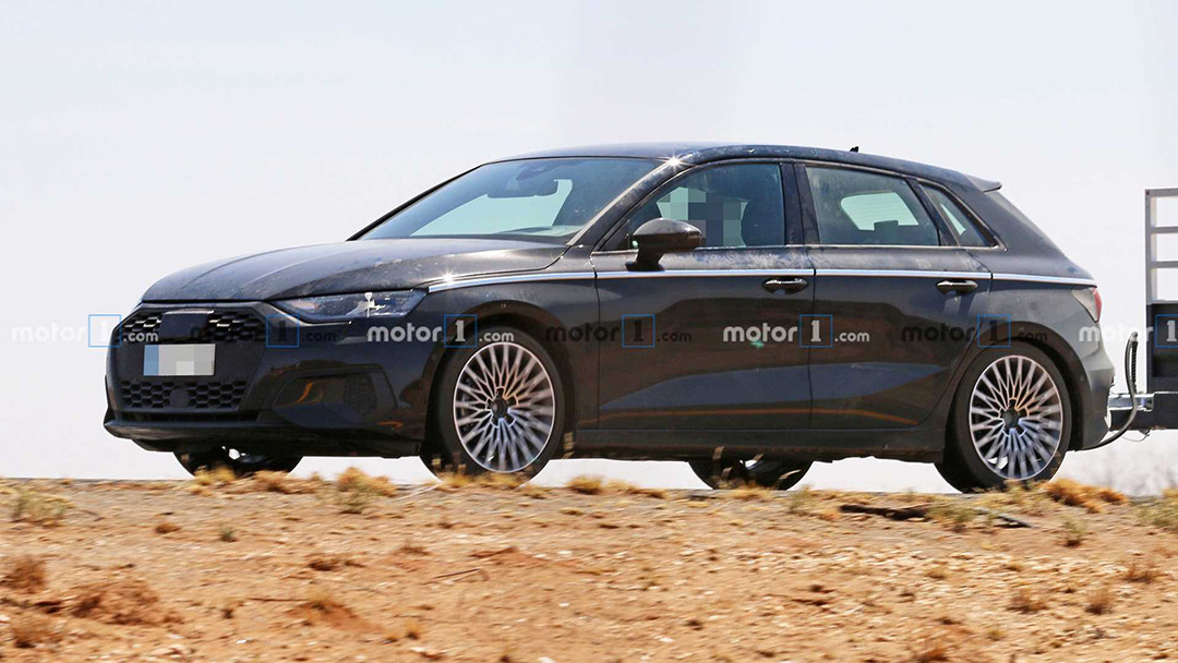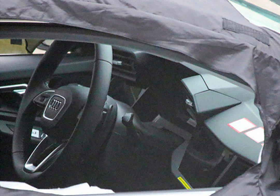 从谍照来看,全新奥迪A3前脸与新一代Q3有一定相似,大尺寸六边形中网相比现款A3棱角更为凌厉,造型扁平。不规则多边形的前大灯组上部布置了条状的LED日行灯带。前包围样式与现款A3的前包围相近,主要在两侧的格栅造型上做出修改。