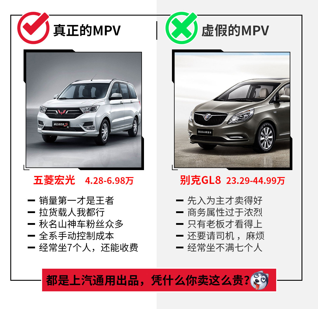 五菱宏光在定位上,甚至都算不上是一款正宗的MPV车型,只是根据划分细则将它归类到MPV这一块。不过这毫不影响五菱宏光的市场定位,无数踏实肯干的消费者在五菱宏光的助力下走向了发家致富的道路,从这层意义来,五菱宏光的作用比别克GL8来说更加深远而厚重。