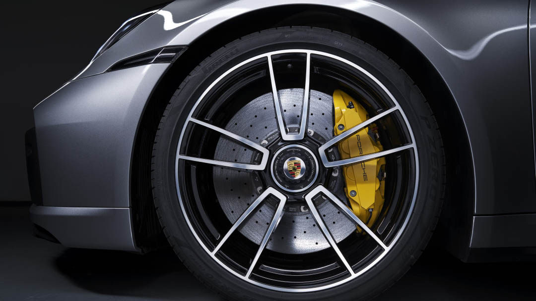 搭配中央锁止装置的轮毂、大尺寸陶瓷刹车盘、和10活塞刹车卡钳以及更大尺寸的尾翼都能让你知道这不是一辆普通的911 。