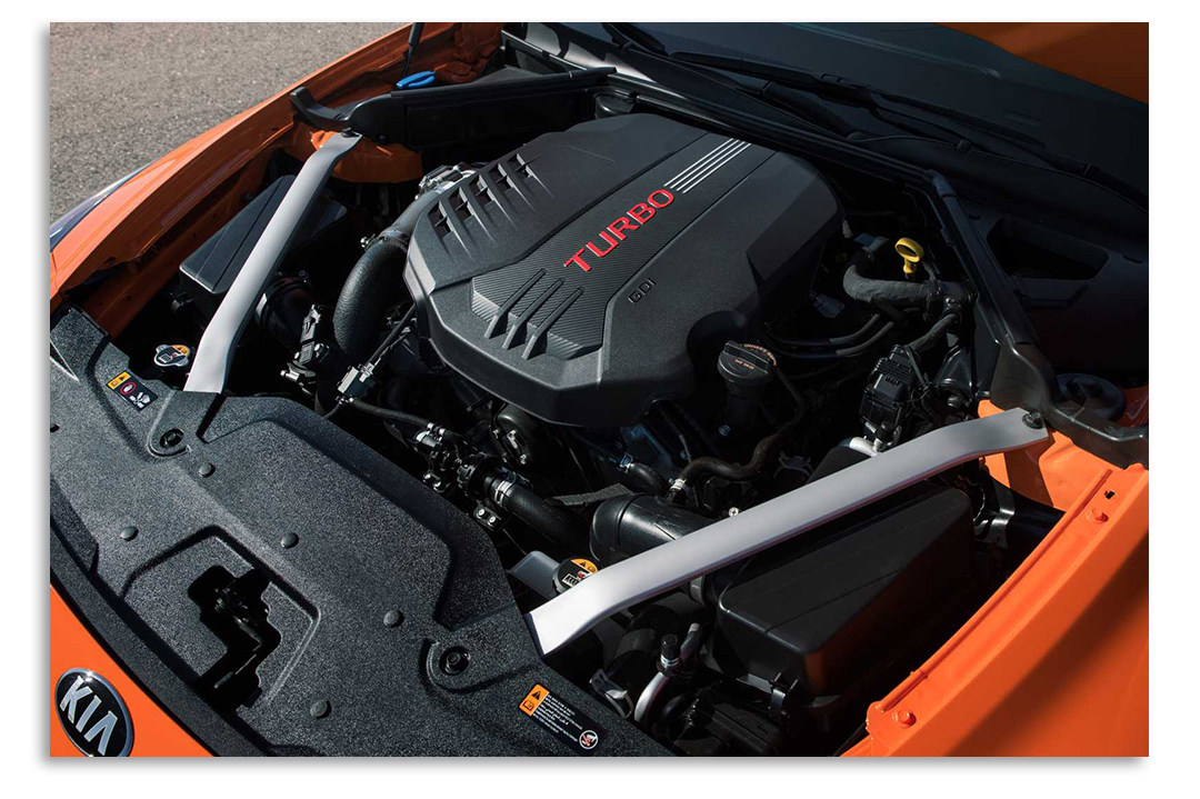 当然其精髓是在于GT版本的3.3T双涡轮增压V6发动机,370马力,这具发动机跟高端子品牌Genesis同源,曾斩获2018年沃德十佳发动机大奖。