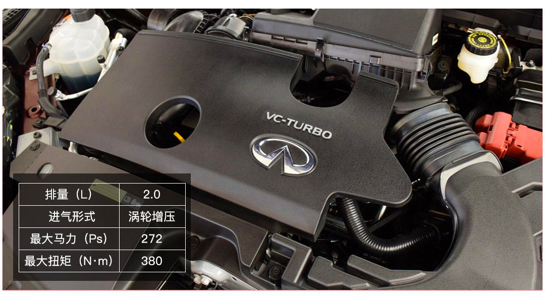 东风英菲尼迪QX50上的2.0T引擎分为了高低功版本,其中高功版马力数字突出,达272匹,而这与其搭载的一项黑科技密不可分。