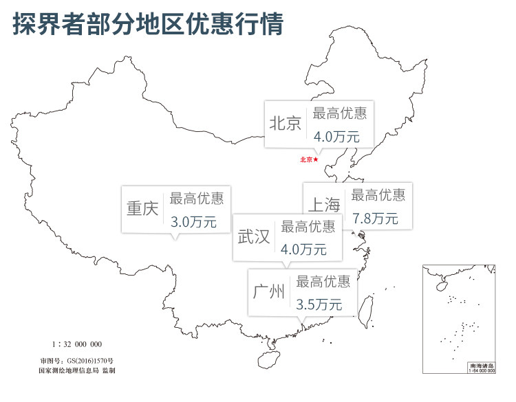 目前,探界者在市场上拥有3.0万元-7.8万元的购车优惠,而在这个优惠上,在部分地区还可以要求4S店赠送一个在高配车型上才会有的倒车影像,这对低配车型而言,无异于是锦上添花。