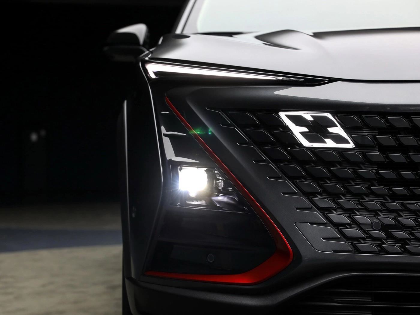 前脸方面,新车的中网延续了长安“大嘴”的风格,而有趣的是它采用了无边框格栅设计,这一点比较特别。由于中网的扩张,留给两侧灯组的位置不多,可以看到前大灯造型比较修长,并与下方不规则的装饰板相连接。
