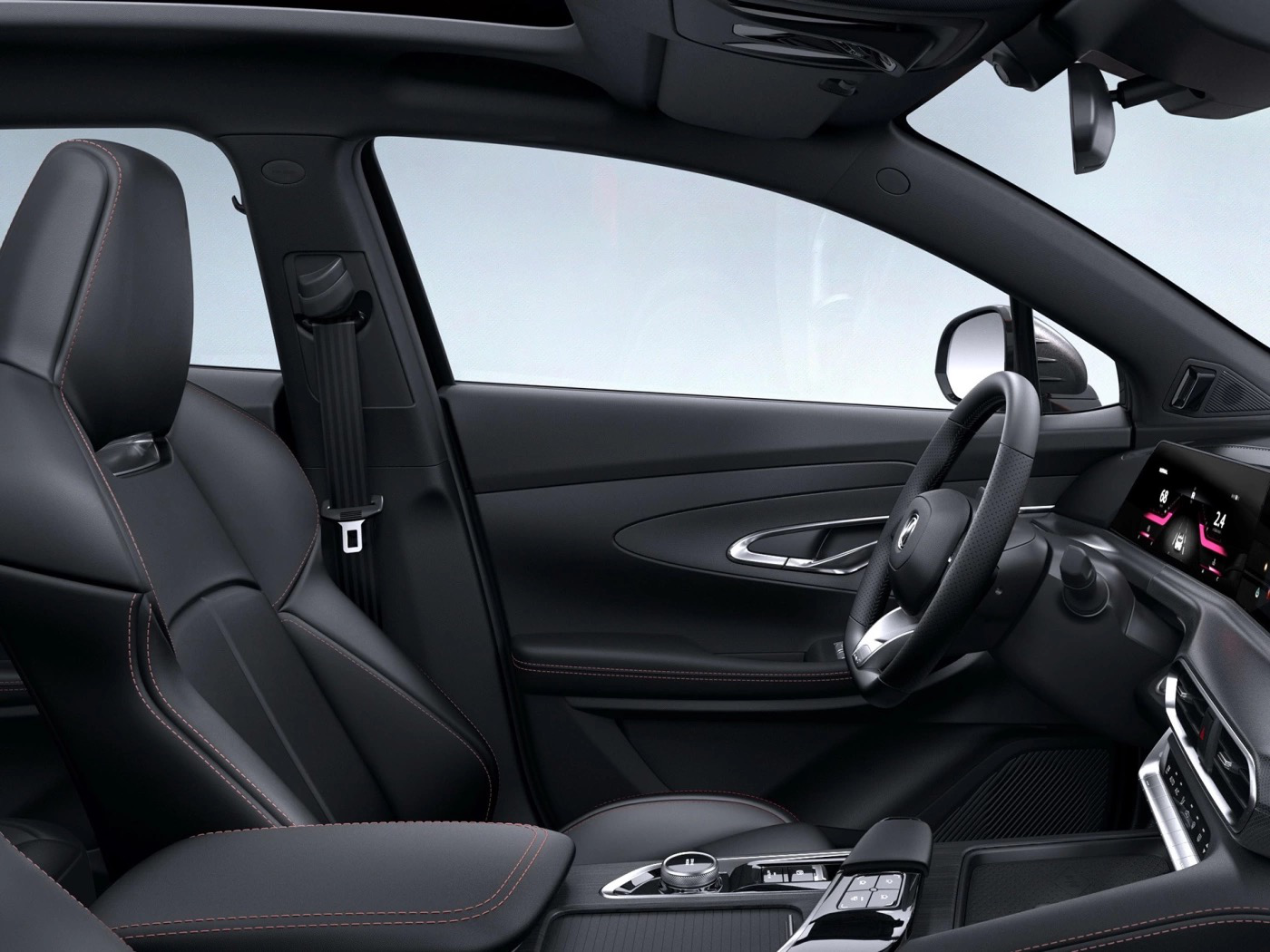 内饰方面则没有外观那么激进,新车继承了品牌设计风格,拥有一体式双10.25英寸触摸屏和运动平底方向盘。