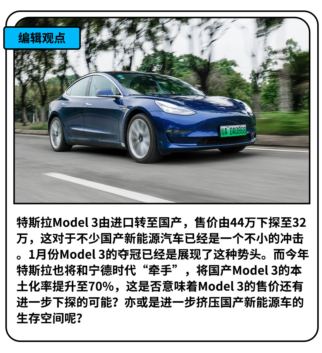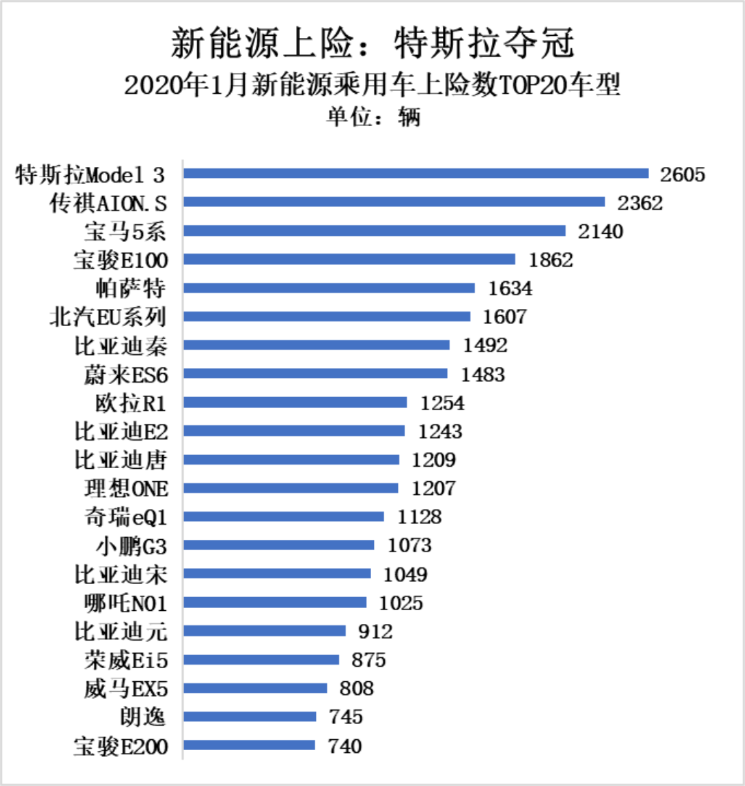 国产特斯拉Model 3于1月7日正式交付首批车型,而根据近期公布的新能源车型上险情况来看,1月份国产Model 3共上险2605辆,超越了国内市场的传祺AION S、北汽EU系列等,这也侧面表明了特斯拉Model 3成为新能源乘用车型月销售冠军。