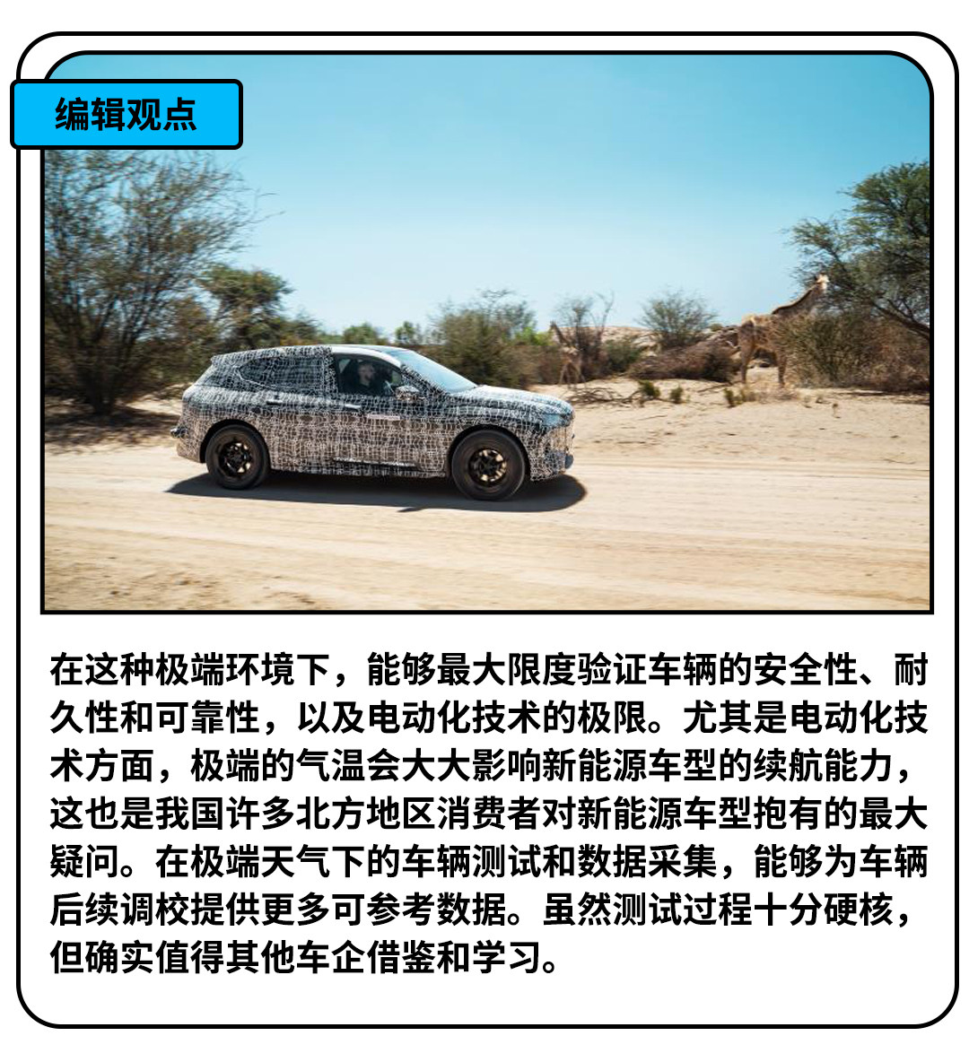 据海外媒体消息称,宝马集团未来技术旗舰BMW iNEXT的原型车在南非的卡拉哈里沙漠地区进行极端环境下的测试,面对沙尘、卵石、碎石等不同地形和路况的挑战,以评估车辆零部件在严酷高温、超强太阳辐射、沙丘砾石等环境下的工作状态。这是BMW iNEXT继去年在北极圈完成极寒测试后的又一重要阶段。