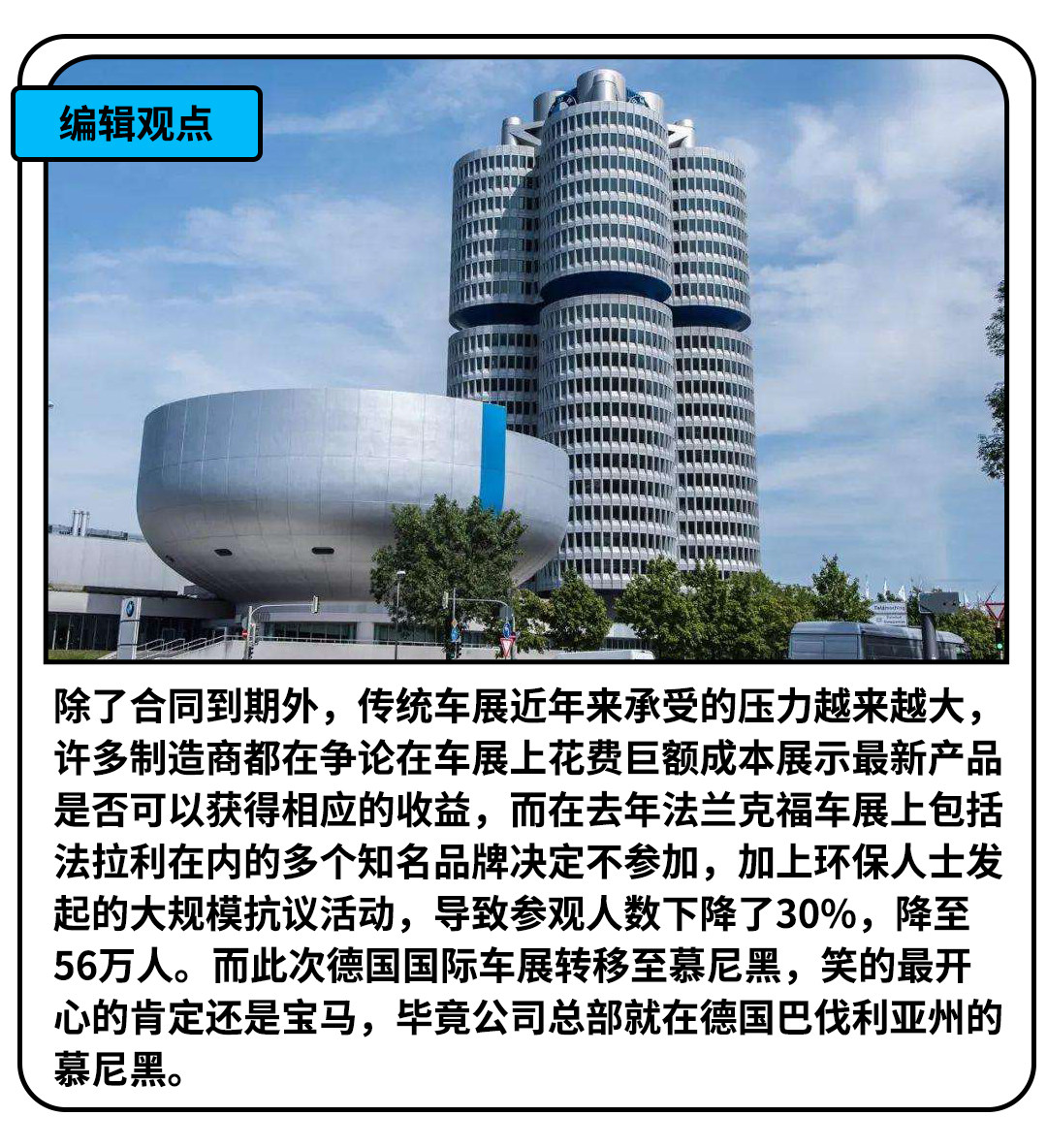 日前,德国汽车工业协会(VDA)表示,慕尼黑将于2021年开始接替法兰克福成为德国国际车展的主办城市。VDA与法兰克福的合同已于去年到期,而VDA也曾为德国国际车展的举办考虑过新方向,其中就包括慕尼黑,除此之外还有汉堡与柏林两个后候选城市。