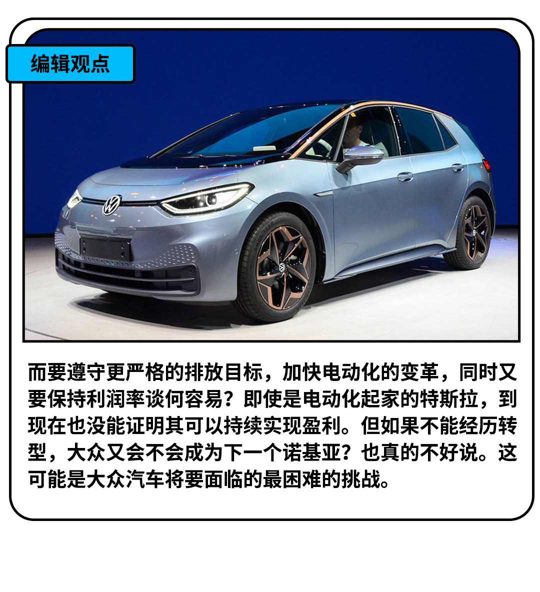 据外媒报道,大众汽车集团背后的保时捷与皮耶希两大家族表示,他们完全支持首席执行官赫伯特.迪斯积极推动公司向电动化转型的做法。而从大众集团制定的电气化转型计划中也能看出,集团将在未来5年内向混合动力、电气化和数字化领域投入600亿欧元,并且计划到2029年推出至多75款电动汽车和60款混合动力汽车,目前大众现有的MEB平台会是集团转型的第一个起点。