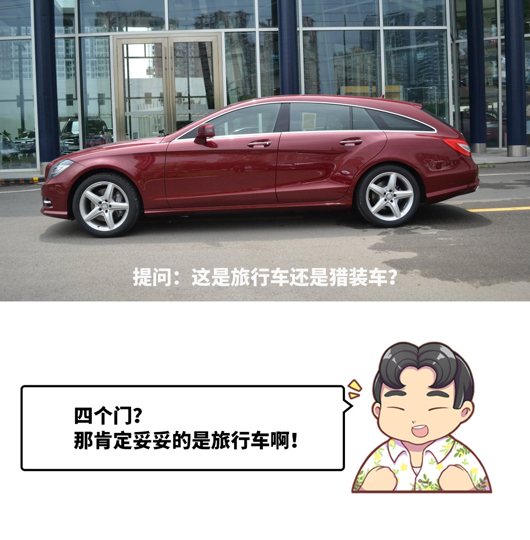 其实这是奔驰基于CLS推出的猎装车,四门版的造型和拉高的后备箱十足的旅行车设计,但不可否认CLS猎装版的身上确实有着跑车的基因和独特的设计美感。在CLS之后,随着捷豹XF Sportbrake以及保时捷Panamera ST的入局,猎装车的定位变得越来越模糊了,能够衡量其标准的,仿佛只剩下售价和跑车基因两方面了。