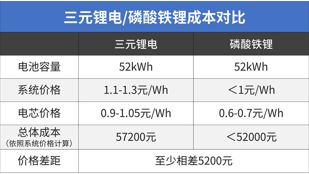 选择宁德时代不难理解,但是宁德时代如今已有成熟的三元锂电电池选择,为什么还要选择磷酸铁锂电池呢?