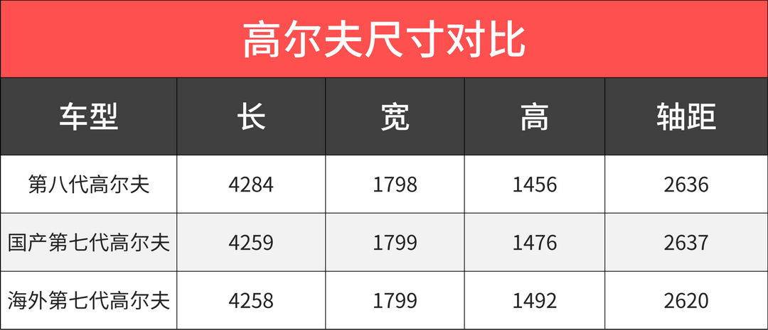 首先,第八代高尔夫的三围比起上一代没有明显的增长。从过往高尔夫加长的幅度来看,即便高尔夫引入国内后进行加长,对乘坐空间的改善也极为有限。所以第八代高尔夫的乘坐体验跟第七代不会有太大差别。